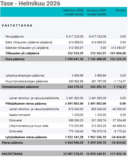 Etusivu Päätöksenteko Talous ja raportoinnit Talouden toteutuminen Tase