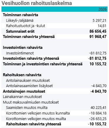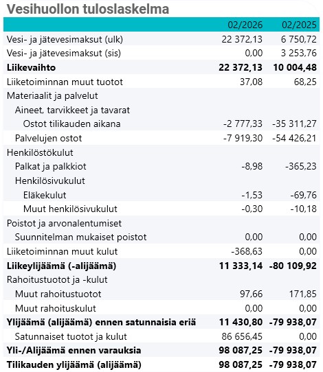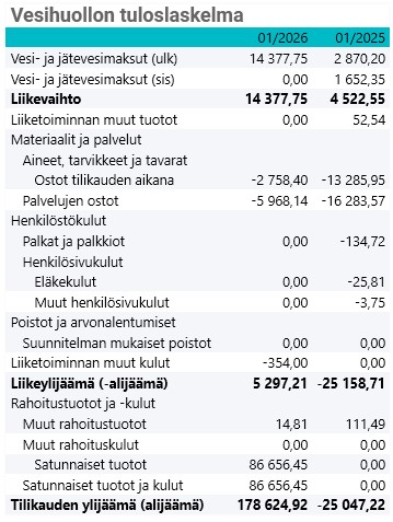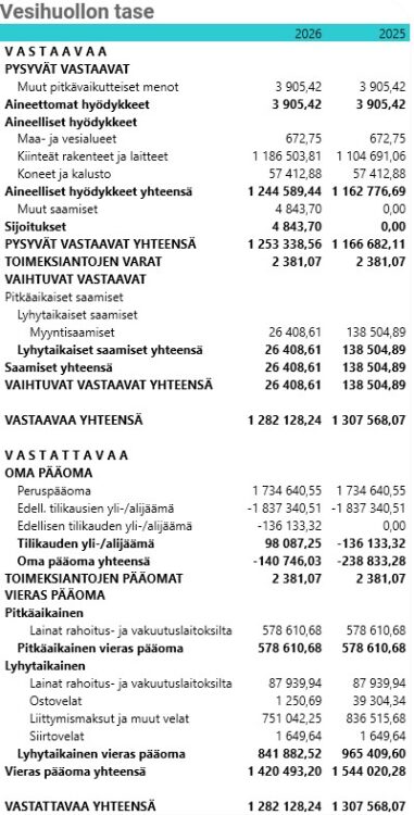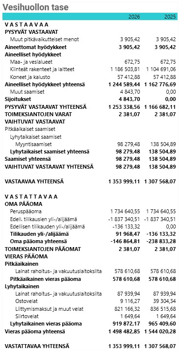 Vesihuoltolaissa (119/2001) on säädetty, että kunnan tulee kirjanpidossaan eriyttää vesihuolto muista toiminnoista. Vesihuollolle on tilikausittain laadittava tase, tuloslaskelma ja rahoituslaskelma sekä esitettävä niiden liitteenä olevat tiedot. Vesihuollon eriyttäminen tapahtuu kirjanpidollisena taseyksikkönä.